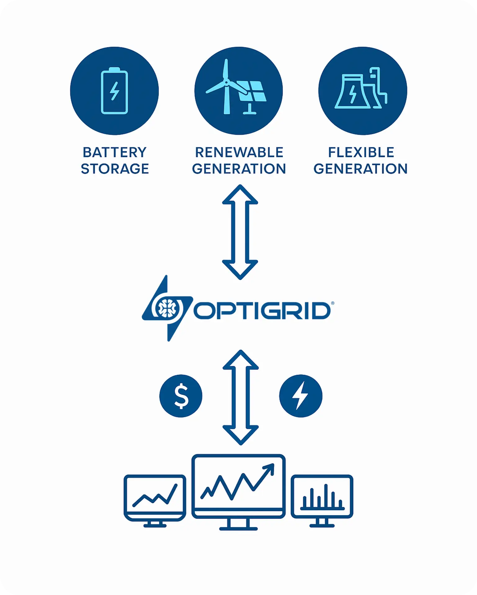 OptiGrid delivers cutting-edge asset optimisation and trading solutions tailored specifically to Australia’s National Electricity Market. By using advanced numerical optimisation, AI, and machine learning, our platform helps you navigate market volatility, optimise asset performance, and maximise your financial returns.